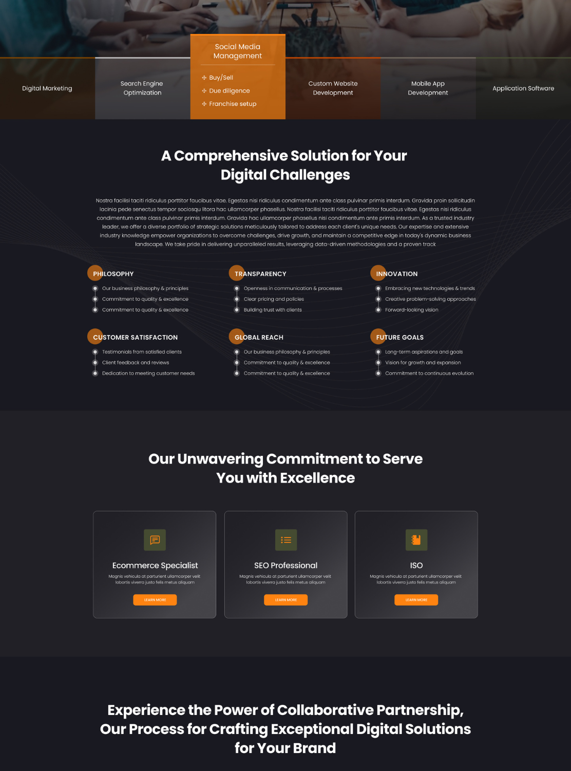A showcase of our commitment to delivering top-tier, innovative digital solutions. We believe in the power of technology and design to transform businesses, catapulting them into the future. Our commitment to quality and excellence is unparalleled.